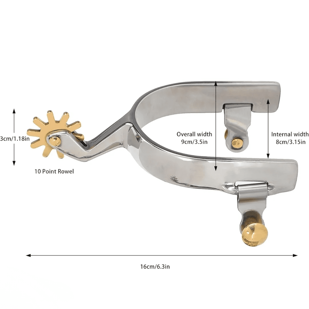 Crafted from high-quality rust-resistant stainless steel, these spurs deliver lasting strength and corrosion protection, ideal for regular riders and professionals alike. The classic American Western design features a smooth, polished silver finish and durable brass swing buttons for easy attachment.