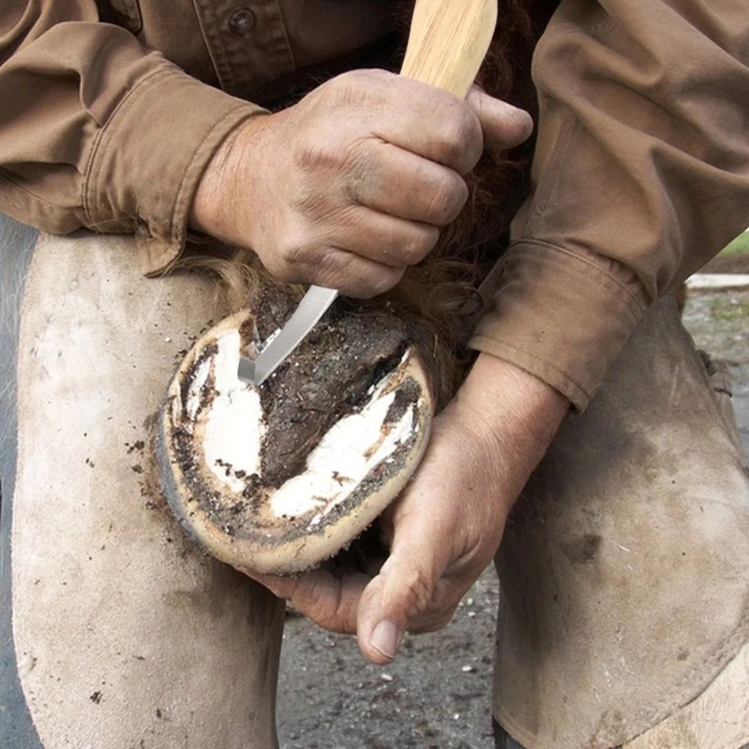 Its ergonomically shaped lightweight wooden handle provides a comfortable and secure grip, ensuring control and accuracy during hoof care. Built with durable stainless steel and fine craftsmanship, this knife delivers long-lasting performance and reliability even under daily professional use.
