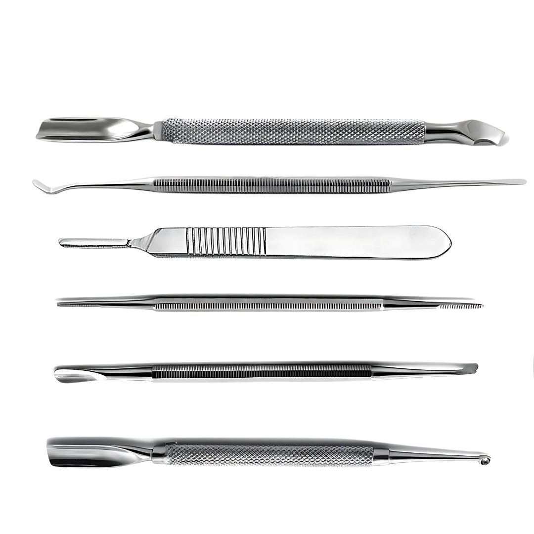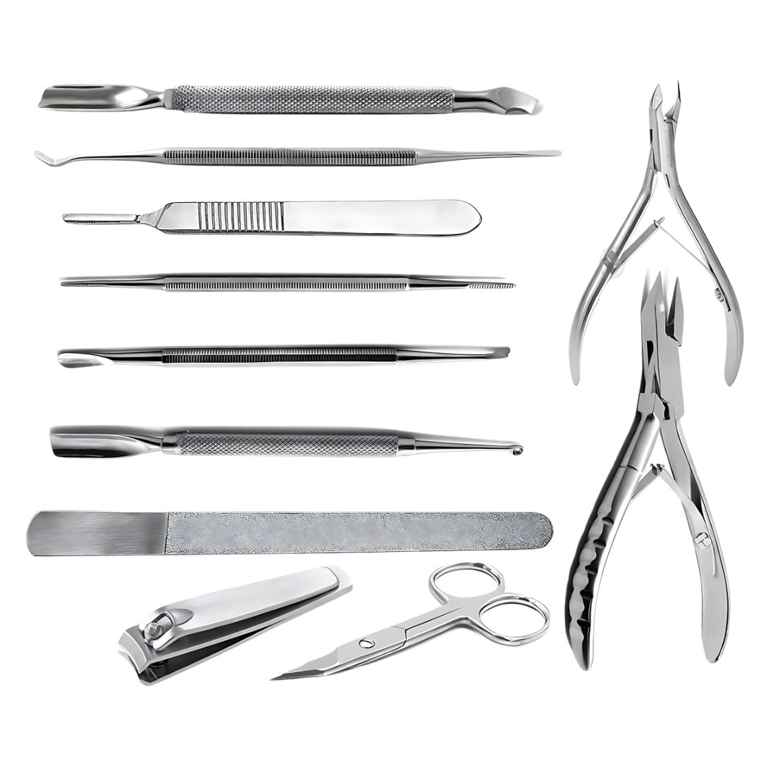 Each instrument is crafted from high-quality stainless steel, ensuring durability, rust resistance, and easy sterilization. With sharp precision edges and ergonomic handles, the tools provide maximum control, comfort, and safety during podiatry procedures and nail treatments.