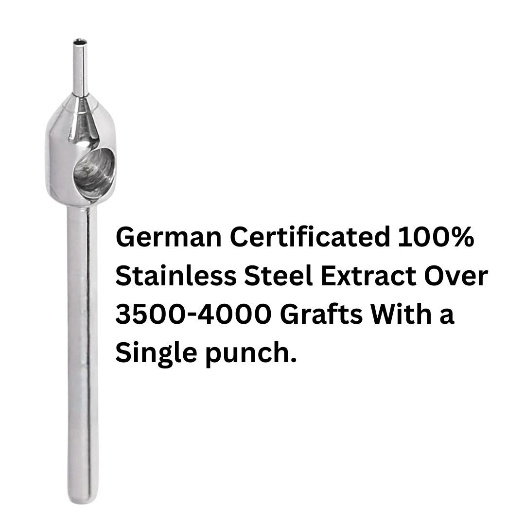 Made from surgical‑grade stainless steel, the Ertip FUE punch is highly durable, corrosion‑resistant, reusable, and fully autoclavable. Its design is optimized for use with motorized FUE systems, ensuring precision, consistency, and reduced surgeon fatigue during high‑volume procedures.