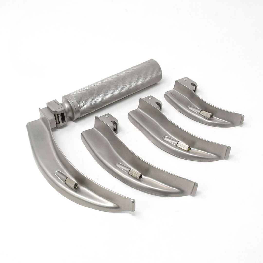 The Kynea Surgical Macintosh Laryngoscope Set Fig. 3 is a premium-quality intubation instrument designed for anesthesiologists and medical professionals. Featuring a 110mm stainless steel blade with matte finish, this laryngoscope ensures strength, durability, and resistance to corrosion.