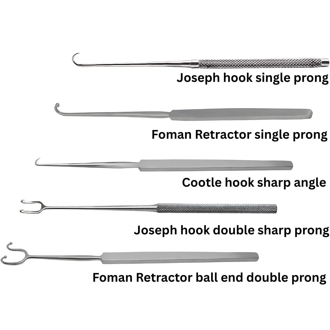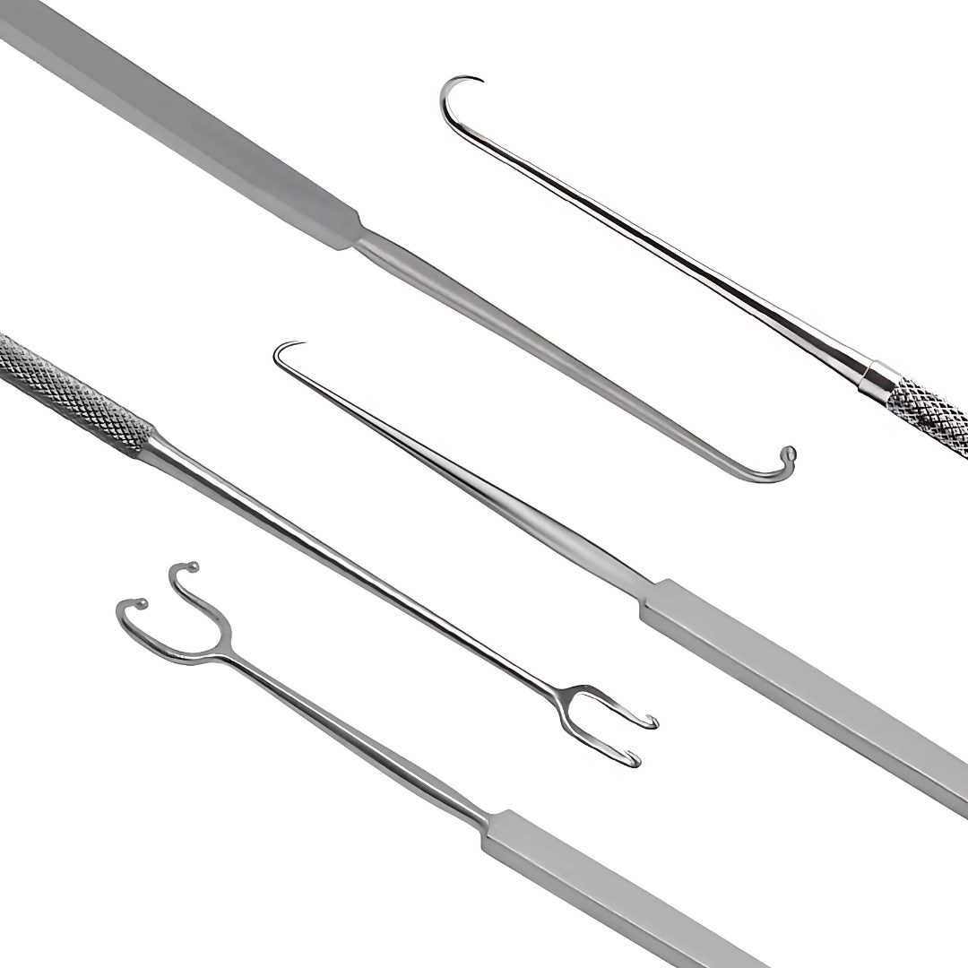 KYNEA SURGICAL presents the Skin Hooks and Retractors Set (5 Pcs), designed for precision in plastic surgery, dermatology, and minor surgical procedures. This versatile set includes blunt and sharp hooks in both single and double ball-ended designs, giving surgeons flexibility for different tissue retraction needs.
