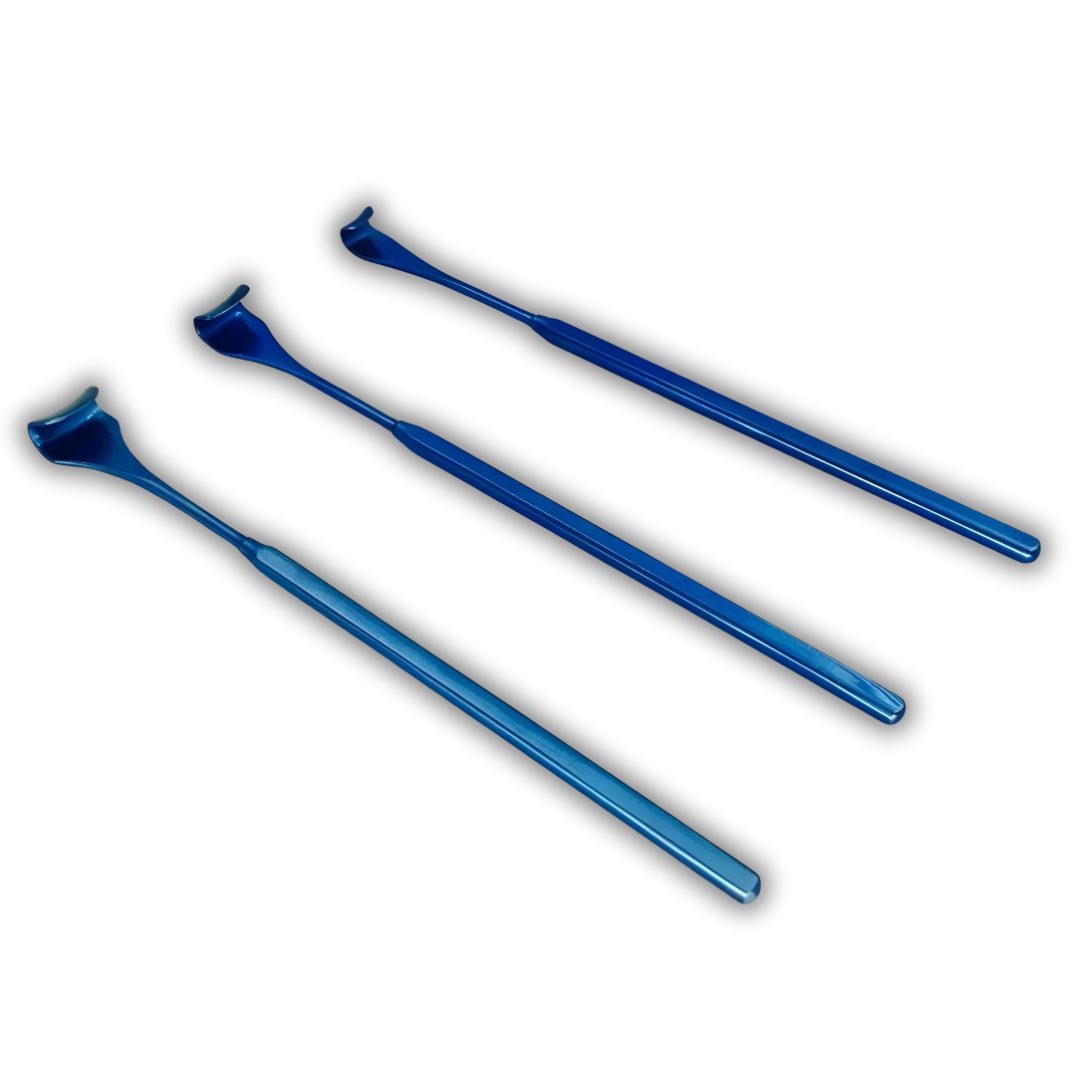 Manufactured from lightweight titanium, these retractors are not only highly durable and corrosion-resistant but also significantly lighter than stainless steel, reducing surgeon fatigue during extended procedures. The smooth, precision-engineered blades are designed to gently retract eyelids and soft tissues without causing trauma, ensuring both patient safety and surgical efficiency.